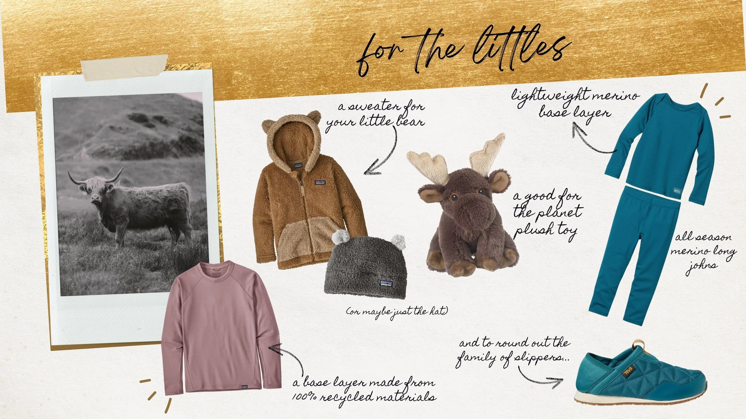 I don’t have children, but my favourite thing about spending time with my nephews and my god son is seeing them experience the outdoors for the first time. So why not equip them with gear that helps protect the planet. A series of sustainable gifts that keep your little ones warm while also lessening their environmental impact. Click the images below to shop mindfully.