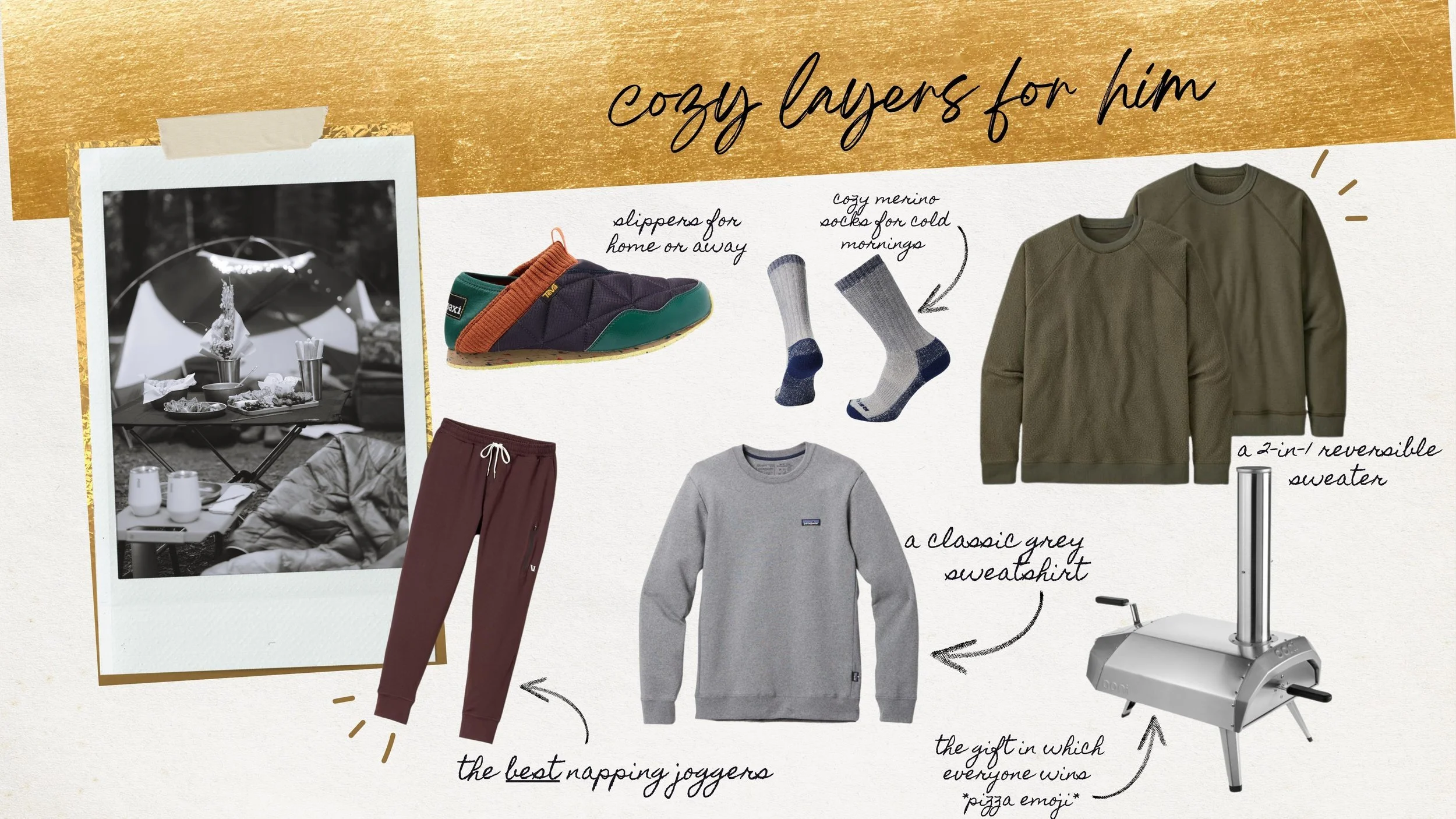 Sunday football, after work video games, extra casual Fridays in the (home) office and layers to wear when curling up on the couch with their someone special. Click the images below to shop for your guy best friend, partner, brothers or dad. Also I am aware that a pizza oven is not a layer BUT if used correctly perhaps you will build your own little layer of insulation.