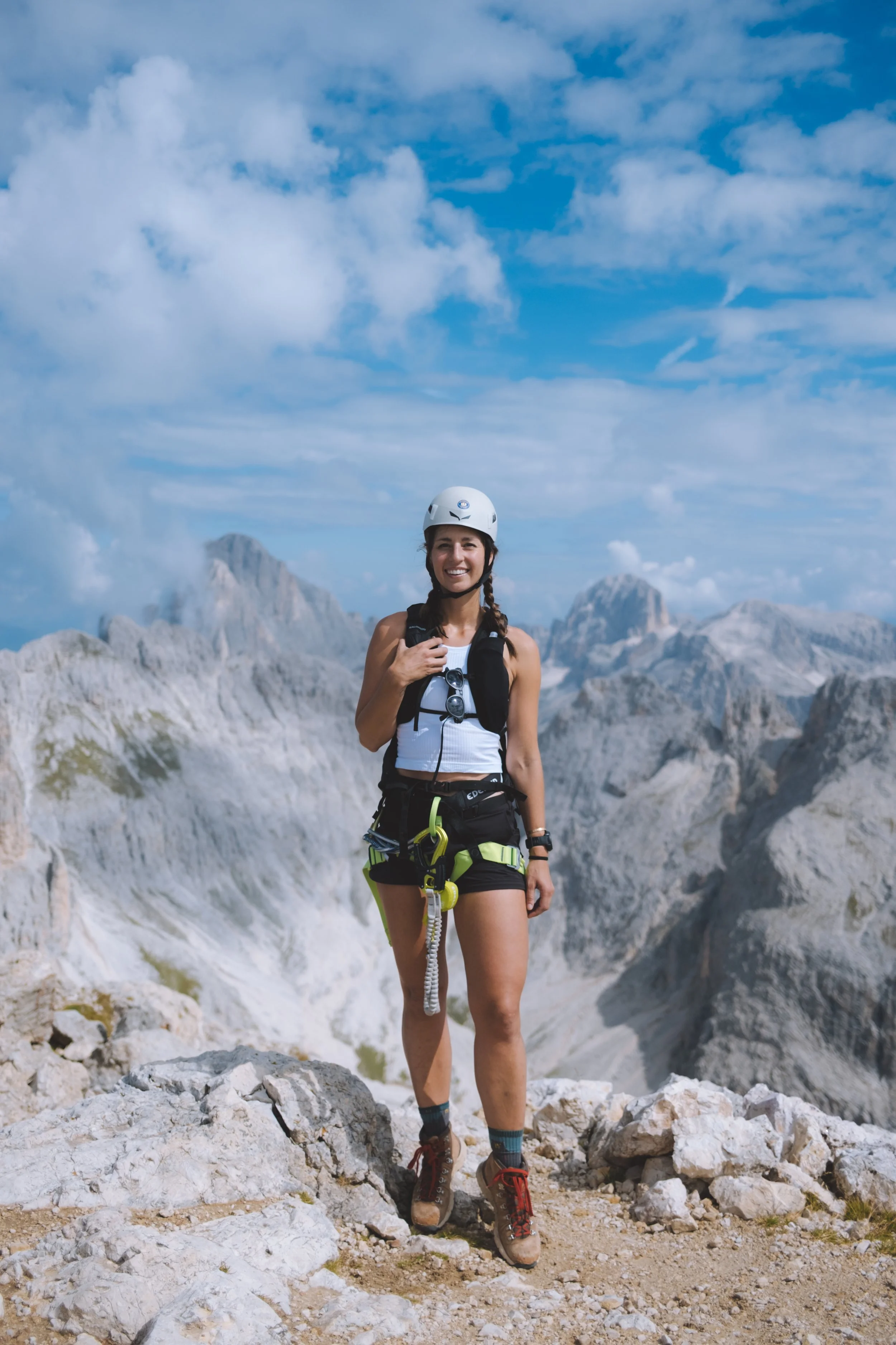 This route was fun in that it was a thru hike with a silly little loop in the middle where you will enter the Via Ferrata Roda de Vaèl - the first section to the summit was quite easy and could arguably be done without the gear (liability disclosure : don’t do this) - but from he summit you will have a down climb that I would personally not do without being tied in. After this small chimney section you have the option to either exit back to the Roda di Vaèl hut (this is the crossover of the loop and the main trail) or continue on to the second section of Via Ferrara. I chose the later. It was a lot of fun and in my opinion more exciting than the first half. The first half has a better view and the second half is more fun. So both very important.